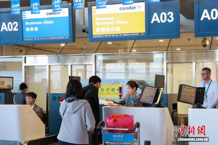 2月6日,旅客在海南海口美兰国际机场办理值机手续。据海口美兰国际机场提供图显示,“第五航权”即第三国运输权,是指一个国家或地区的航空公司在经营某条国际航线的同时,获得在第三国经停并装载客货的权利。这种航权可以通过拓展航线网络,弥补直航航班在客、货源方面的不足,避免运力浪费,同时增加营运收入。对于旅客而言,第五航权还提供了体验异国飞行服务的机会。
