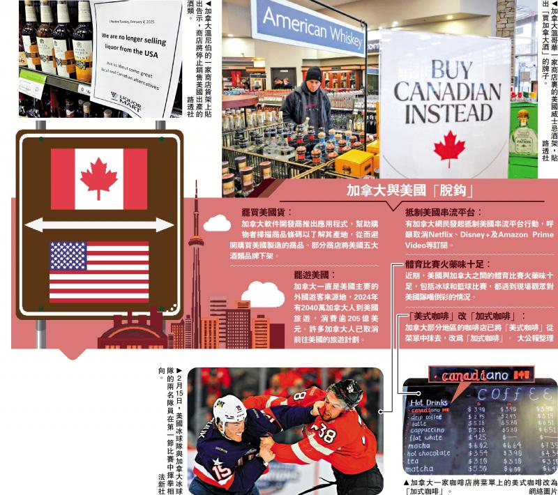 【大公报讯】特朗普针对加拿大加征25%新关税政策,将于3月4日正式生效。从2月开始,加拿大民间掀起一场杯葛美国的行动。有人在社交媒体上发起了一场名为“经济停电”(economic blackout)的抵制行动,呼吁所有加拿大人在2月28日当天不到美国企业消费,包括光顾Costco、沃尔玛、亚马逊和麦当劳等美国知名连锁品牌。