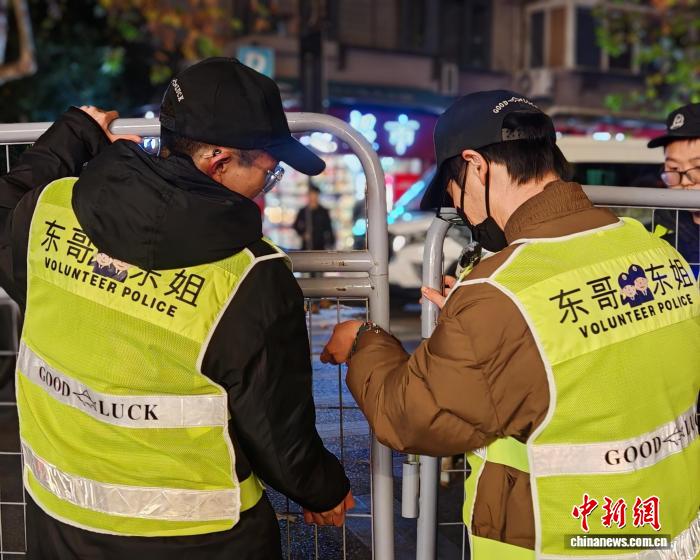 在这个特别的夜晚,队员们选择放弃与家人团聚的机会,坚守在路边,助力安保工作。“今年是我们义警队参与跨年保障的第二年。变化挺明显的,整体安保力量增强了,但人也是真多啊。”队长雯姐(化名)感慨道。