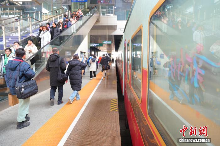图为1月1日,乘坐"丝路梦享号"的旅客在西宁车站准备登车。 周悦翔 摄