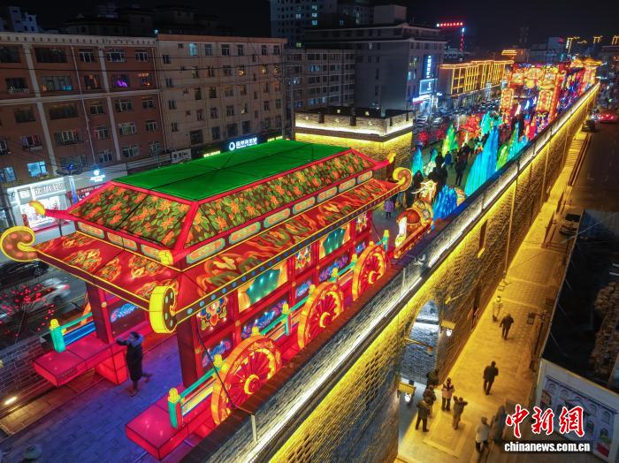 图为航拍“宁宁协作·合源和美”第三届青海丹噶尔双宁双灯展暨第40届中国·秦淮灯会丹噶尔古城分会场。灯彩璀璨(无人机照片)。