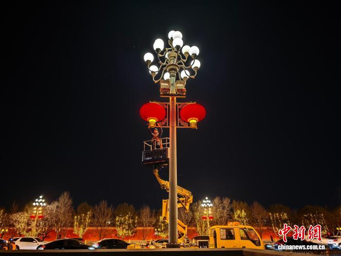 中新网北京2月7日电(记者 徐婧)2月6日,国网北京电力城市照明管理中心(简称“照明中心”)在长安街及其沿线的春节景观布置全部就位,与北京城区的春节灯笼灯饰一道进入“春节模式”。