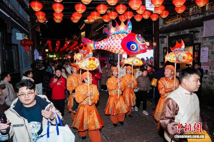 鳌鱼灯巡游靖港古镇