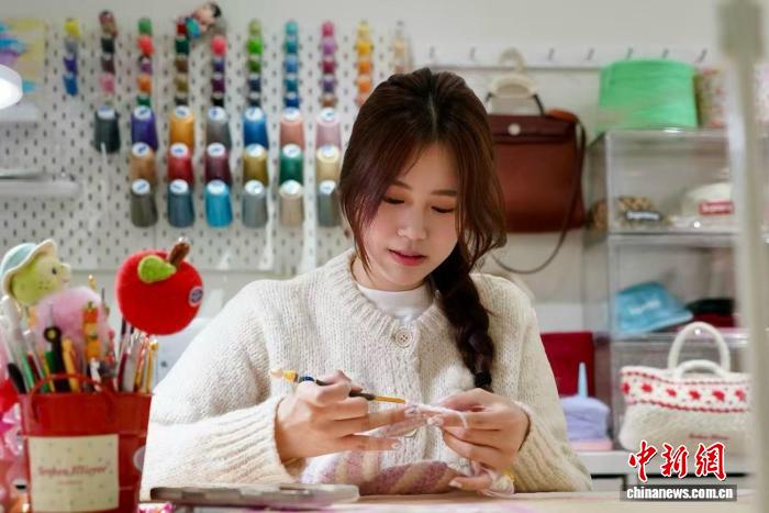 在浙江嘉兴桐乡的一个温馨角落,陆穗晋正专注地在工作台前钩织。她的手指在纱线间灵活穿梭,仿佛在编织着一幅幅生动的画卷。受访者供图
