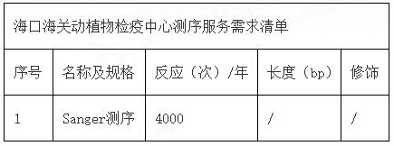 为满足海口海关动植物检疫中心日常检测需求,需对测序服务进行采购。