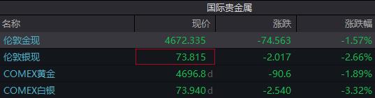 截至发稿,现货黄金价格报4672.335美元/盎司,下跌1.57%;现货白银价格73.815美元/盎司,下跌2.66%;COMEX黄金期货价格4696.8美元/盎司,下跌1.89%;COMEX白银期货价格73.94美元/盎司,下跌3.32%。