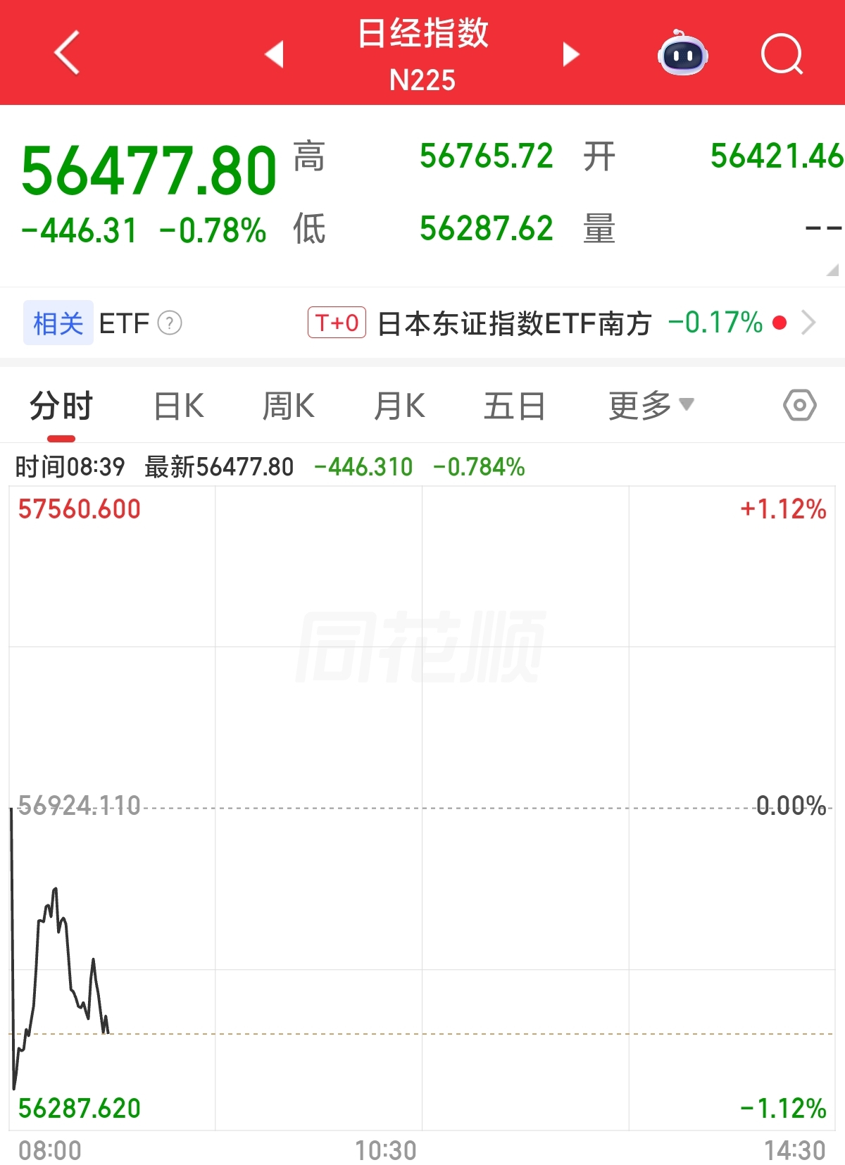 日本*方面,日经225指数盘中一度下跌超1%,最终报收56477.8点,跌幅0.78%。